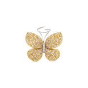 18K Yellow Gold finger-activated fluttering butterfly ring decorated with round brilliant-cut natural fancy color palette diamonds, and 18K white gold body and movement pave'-set with colorless diamonds: 10.29 carats