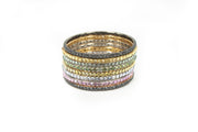 18K Rose, White or Yellow Gold bangle bracelet decorated with round, diamond cut diamonds or sapphires. White Gold styles feature Black Rhodium Wash for an extra pop of color