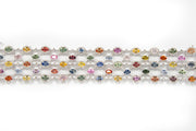 18K White Gold Strap bracelet mounted with multi-color oval Sapphires and decorated with Brilliant-cut Diamonds