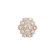 18K White Gold ring decorated with round, Brilliant-cut Diamonds in honeycomb layout with floating Champagne Diamonds