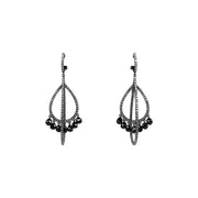18K White Gold Elliptical Ear Pendants decorated with round, Brilliant-cut diamonds, suspending a fringe of Black Diamond Briolettes with a black rhodium wash