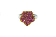 18K Rose Gold stylized 5 clover ring decorated with pave-set Pink Sapphires