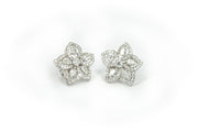 Romantic 18K white gold 5-petal floral earrings mounted with floating pear-shaped diamonds within a trim of pave'-set round brilliant-cut diamonds, total weight: 3.82 carats. Fitted with French clip and post for pierced ears. Can be worn without posts.