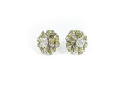 Bright and happy 18K White Gold floral ear clips composed of individual petals adding animated breath to the complete flower. Completely pave'-set with natural color round brilliant-cut greenish-yellow diamonds, and wisps of colorless diamonds, these flowers are topped off with stylized pistils set with marquise and princess-cut diamonds in a circular configuration. Fitted with French clips and posts