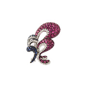 Stylized Blue + Pink Sapphire and Diamond Butterfly Brooch