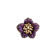 Titanium flower ring mounted with Brilliant-cut Diamond petal highlights and 18K Yellow Gold Pistils mounted with fancy color diamonds and purple wash