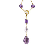18K Yellow Gold "Y" Necklace mounted with fancy shape, multi-color Amethysts and decorated with round, Brilliant-cut diamonds