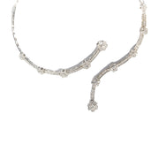 18K White Gold Asymmetric Necklace composed of flower elements and decorated with pave-set diamonds