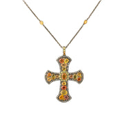 Stylized Gothic Multi Color Sapphire + Diamond Cross Necklace