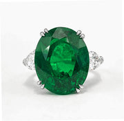 Oval Emerald and Pear-shape Diamond 3-stone Platinum Cocktail Ring