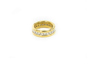 18K Yellow Gold ring continually set with a row of channel-set, Princess-cut diamonds