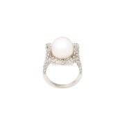 18K White Gold ring with pave-set Diamonds and mounted with a South Sea Pearl