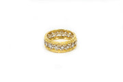 18K Yellow Gold etched band with an 18K White Gold insert decorated with continually set round diamonds