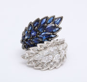 Toi et Moi Marquise Sapphire and Diamond Wreath Wrap Cocktail Ring