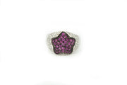 18K White Gold ring mounted with a star motif, decorated with pave-set Pink Sapphires and pave-set Diamonds