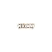 18K White Gold band ring decorated part-way with round, Brilliant-cut diamonds, collet-set