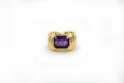 18K Yellow Gold fluted ring, mounted Emerald-cut Amethyst